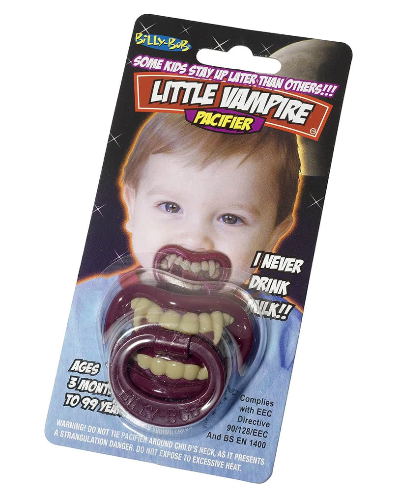 Babys sind oft richtige Schreihälse und können einem das Leben zur Hölle machen! Und trotzdem liebt man sie über alles selbst wenn sie beim Stillen manchmal kräftig zubeissen. Mit dem lustigen Baby Vampir Schnuller kannst du das kleine Ungeheuer beruhigen und hast zugleich einen süßen Grusel-Effekt.