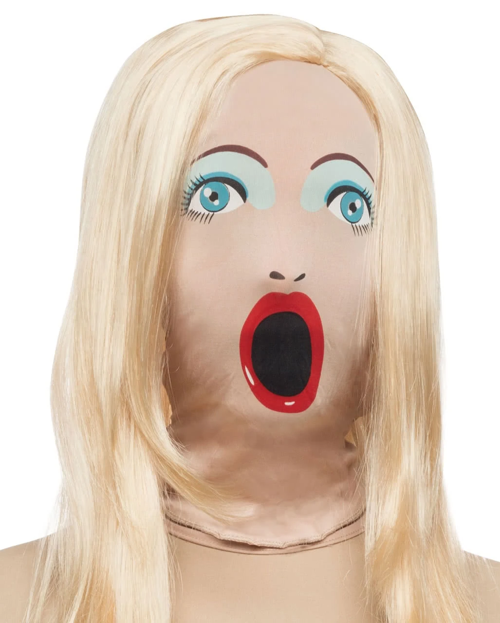 Extrem lustige Erotic Doll Maske für den frivolen Faschingsball oder als frecher Scherzartikel für den Junggesellenabschied. Als lüsterne Sex Puppe maskiert bist du bestimmt der absolute Partygag. Die Stoffmaske mit der angenähten blonden Perücke findet ihren Einsatz auf der Showbühne von Travestie Show, Cabaret und Männerballett ebenso, wie im privaten Bereich von Travestie & Cross Dresser Fans. Extrem gelungene Frauenmaske, die für Kontroversen sorgt.