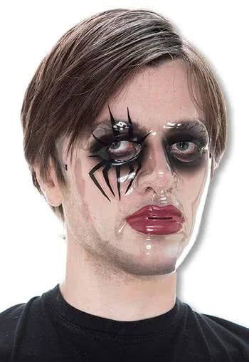 Der unheimliche Effekt wird durch das Durchschimmern deines eigenen Gesichts bei dieser Halloween Maske noch verstärkt. Die PVC-Maske, welche mit einem Gummiband am Kopf befestigt wird hat schwarze Schatten um die Augen, eines davon ist von einer Spinne umspannt. Weitere schauerliche Masken wie die Hexenmeister Darius Maske und die transparente Zombie Maske sind ebenfalls hier im Horror-Shop erhältlich!