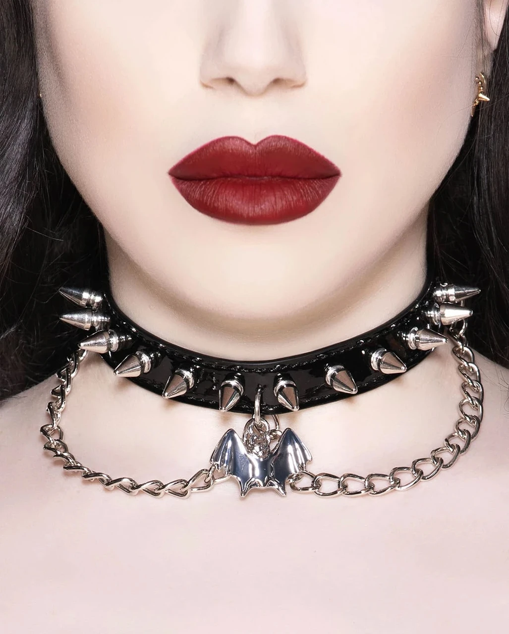 Das KILLSTAR Bat Babe Halsband ist ein mystischer Hingucker für deinen blassen Hals. Das Gothic Halsband, das vor allem die Herzen der Vampir und Fledermaus Fans erfreuen wird, ist mehr als nur ein Modeaccessoire. Das Halsband ‚Bat Babe‘ von Killstar ist eine Kuriosität, die zu gleichen Teilen Verspieltheit und stilvolle Details verkörpert! Das Fledermaus & Nieten Halsband passt zu allem, was dir deine Stimmung oder der Mond vorgeben.
