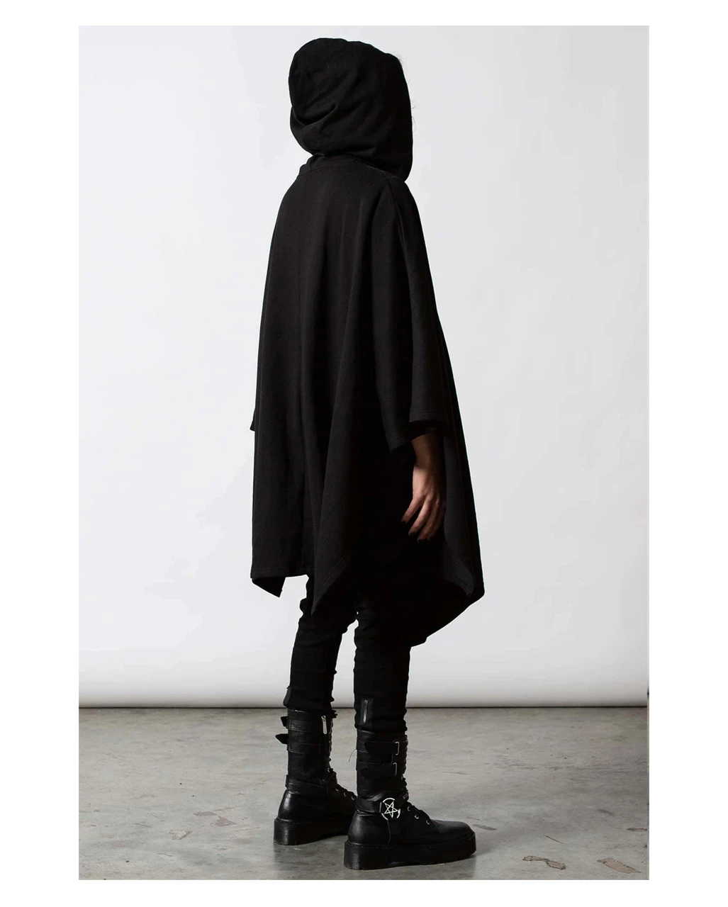 Mit dem KILLSTAR Evilish Umhang setzt du ein echtes Statement. Als langer, weiter Hoodie in Schwarz überzeugt der Pulli mit einem lässigen Style. Die XL-Kapluze sowie der asymmetrische Saum runden den Look ab. Trage diesen weichen KILLSTAR Umhang zu Jeans oder Bikerhosen – fertig ist dein Outfit. Übrigens: Auch als Geschenkidee macht sich Gothic Mode absolut perfekt!