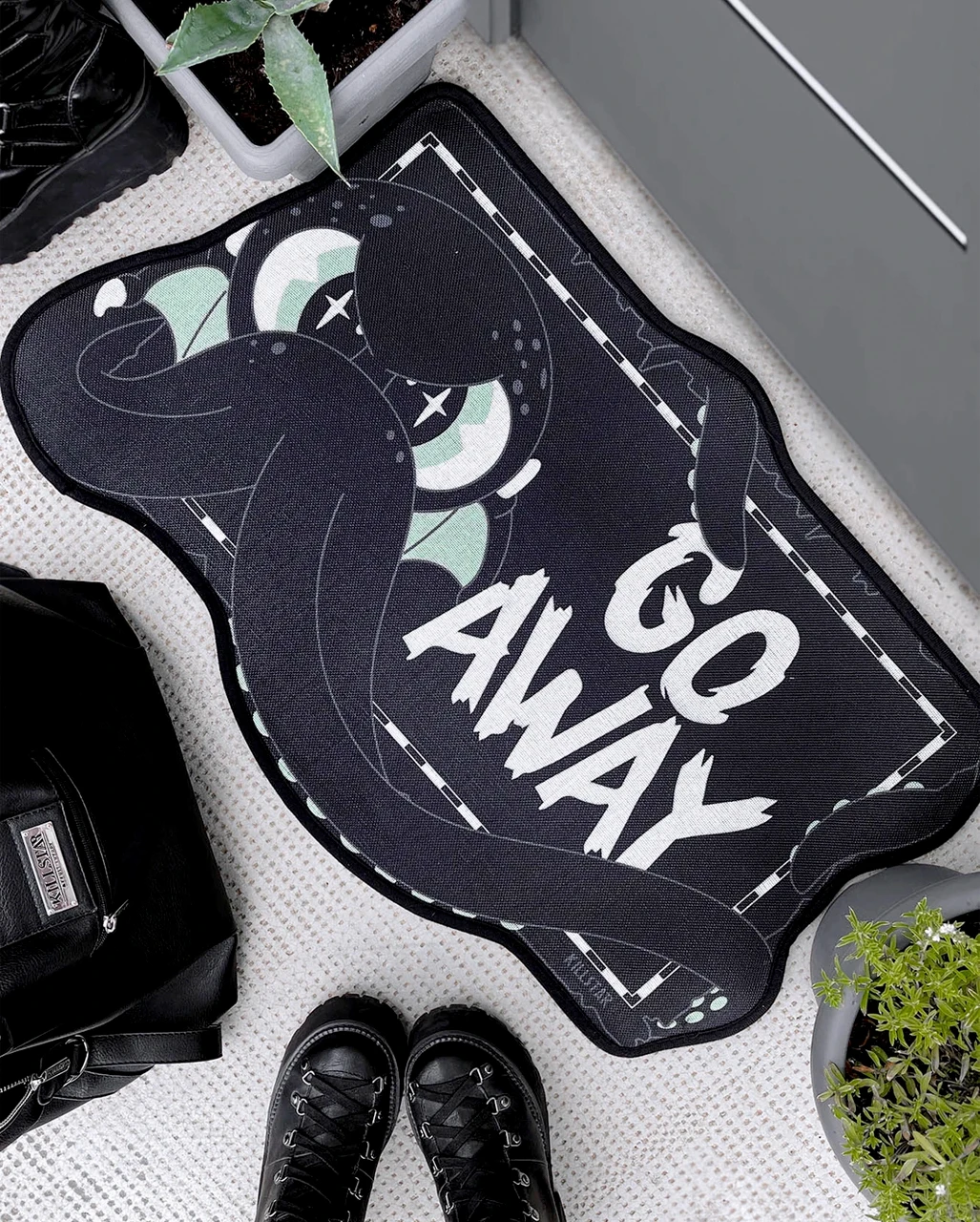 Kaufe den KILLSTAR Go Away Cthulhu Fußmatte für dich selbst oder als Geschenk für einen Gothic oder Halloween Fan. Mit dem kontrastierenden Cthulhu Motiv ist der Fußabtreter im Gothic Style eine tolle Abwechslung zu gängigen und meist etwas langweiligen Fußmatten. Die Matte ist rutschfest und sowohl für den Innen-, als auch für den Außenbereich geeignet.