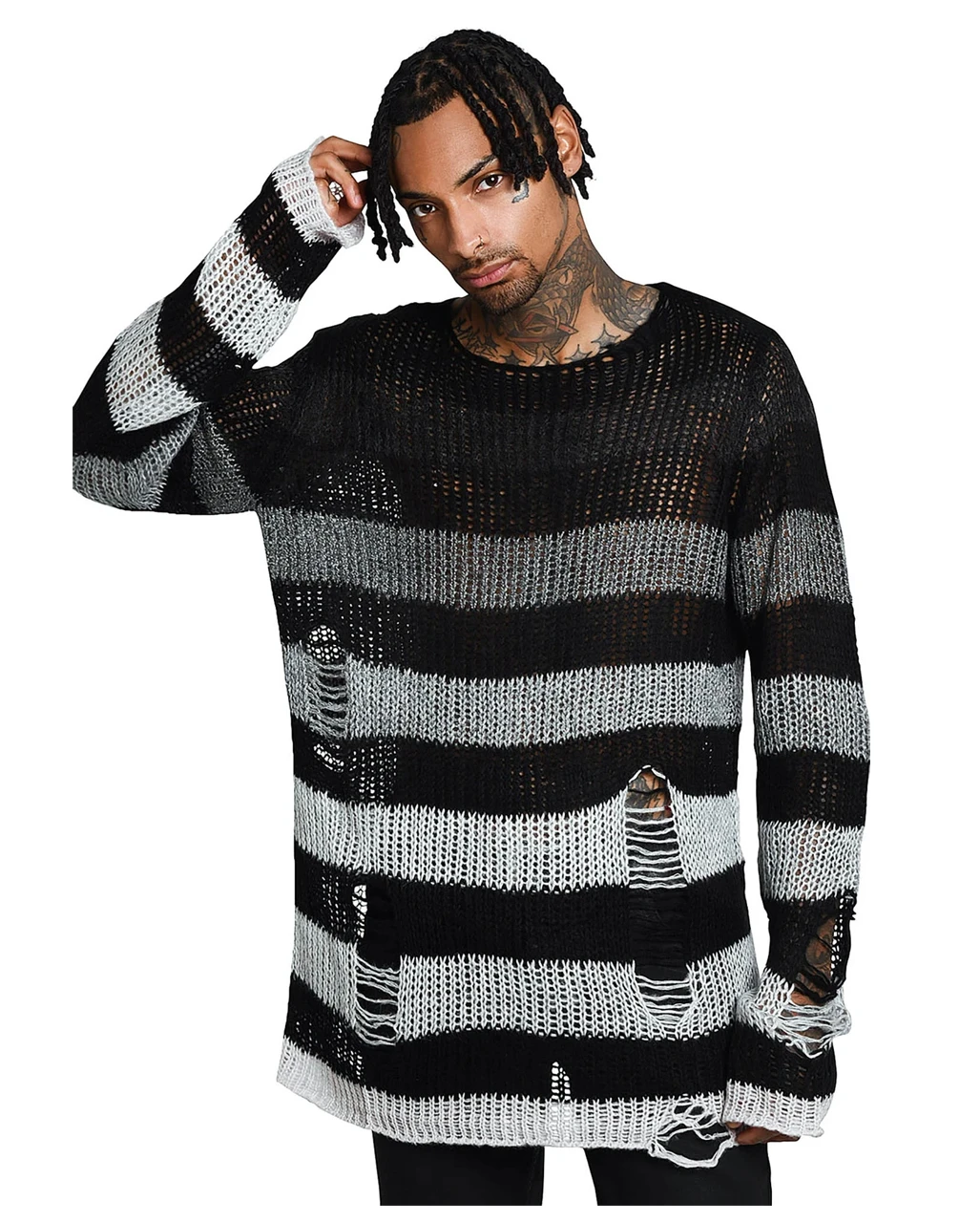 Unser KILLSTAR Grady Strickpullover ist das ideale Gothic Oberteil für alle, die ihren alternativen Mode Look kultivieren. Der Unisex Strickpulli in grau-weiß-schwarz gestreiftem Design ist ein echtes Statement. Du wirkst damit so lässig wie du dich fühlst. Du gehst schließlich deinen eigenen Weg und das gilt auch für dein Styling, das sich keinem Mode-Diktat unterwirft. Sei einfach du selbst und entdecke die richtigen Accessoire und Kleidungsstücke dafür in unserem Shop!