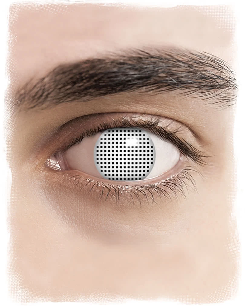 Mit diesen qualitativ hochwertigen weißen Kontaktlinsen kannst Du jedem blindem Charakter den letzten Schliff geben. Die farbigen Kontaktlinsen in der Farbe Weiß sind raffinierter Weise komplett mit einem weißen Netzmotiv bedruckt, das so ein heraus sehen möglich macht, ohne das man dabei Deine dunkle Pupille sieht.
