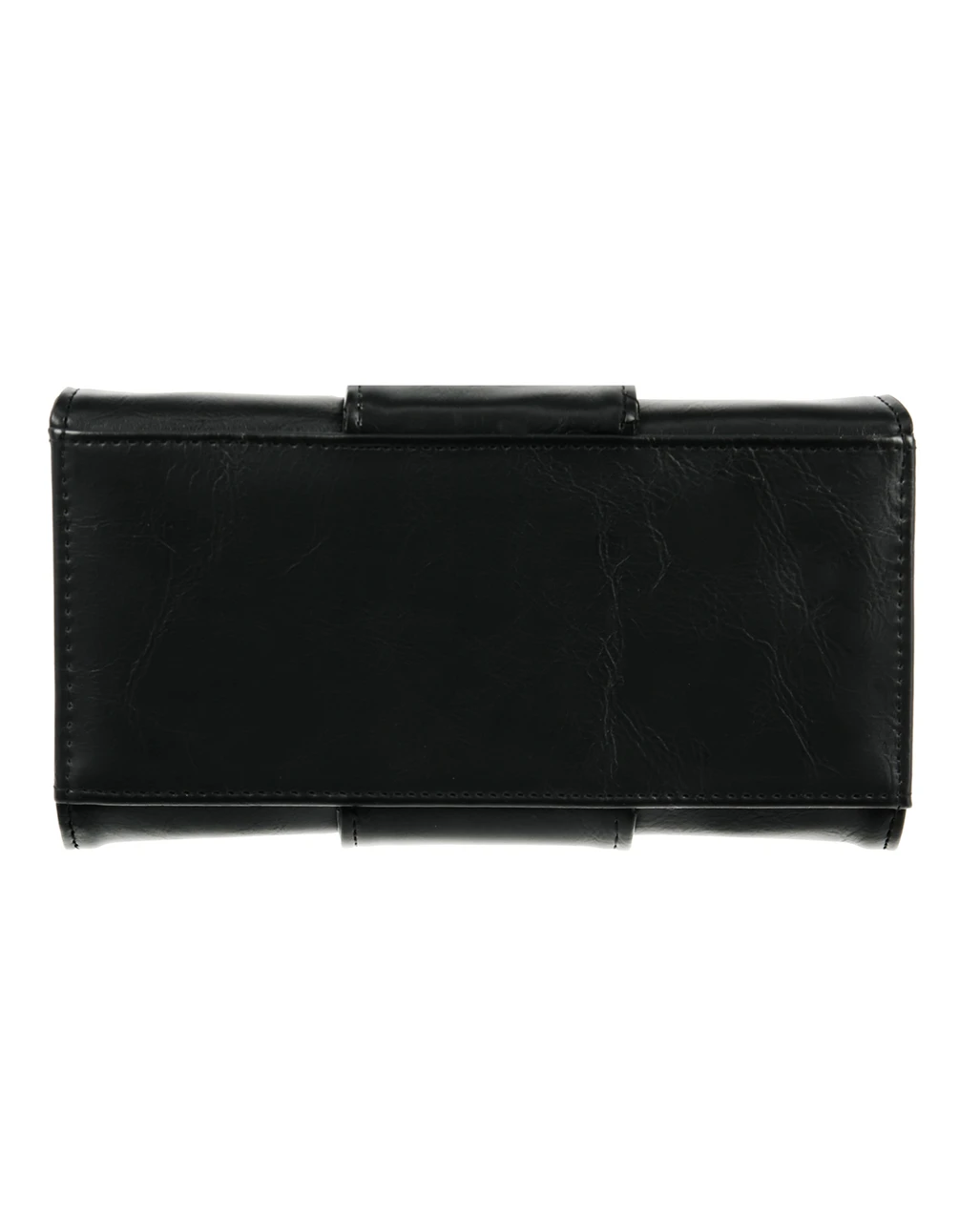 Die Moon Gothic Purse mit Fledermausflügel ist aus stabilem und festem Kunstleder gefertigt. Mittels Druckknopf lässt sich die Geldbörse öffnen. Der schwarze Fledermaus Geldbeutel ist länglich designt und verfügt über drei Hauptfächer für Geldscheine und ein Reißverschlussfach für Münzen. Auch Visitenkarten finden hier einen Platz. bewahre deine Moon Gothic Purse mit Fledermausflügel in unserer KILLSTAR Never Trust the Living Handtasche auf.