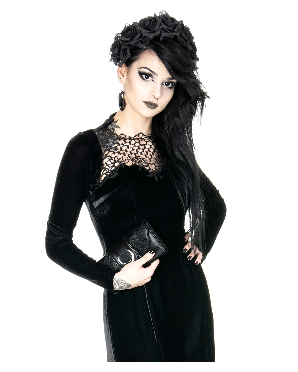 Schwarzer eleganter Gothic Geldbeutel mit Halbmond