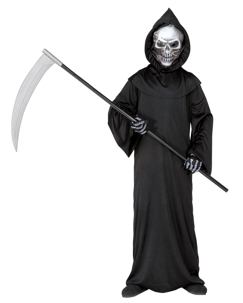 Klassisches Grim Reaper Kostüm für Kinder mit Maske & Handschuhen