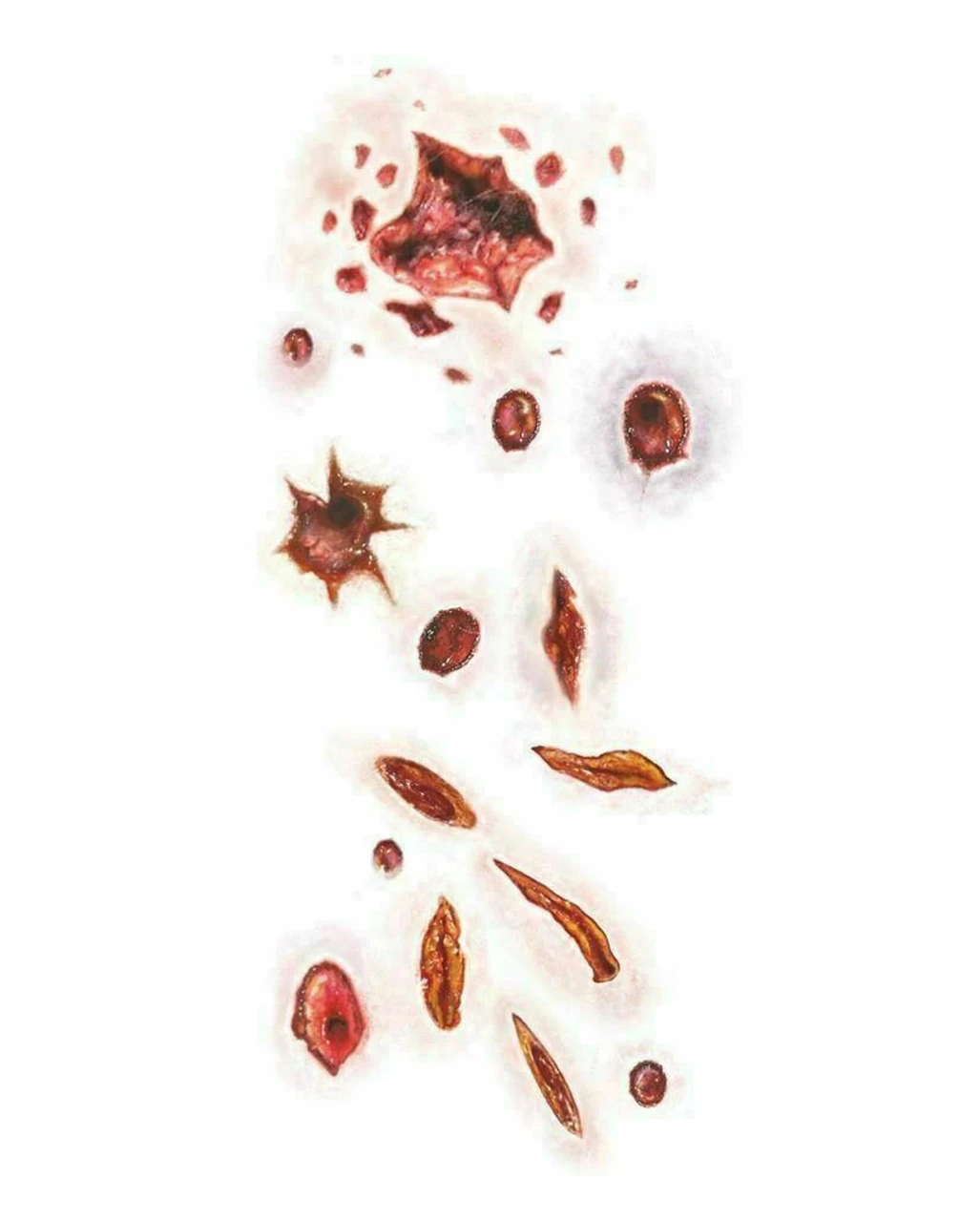 Die Shot & Stabbed Trauma Klebetattoo sorgen für einen eindrucksvollen Effekt. Echt aussehende Wunden sind schon was Tolles! Manchmal machen sie auch reich und berühmt. Der Erfinder der FX Transfer Wunden Christien Tinsley etwa ist einer der bekanntesten Make-up Artisten Hollywoods. Seine Arbeiten sind in Filmen wie „American Horror Story“, „I am Legend“ und „The Passion of the Christ“ unter der Regie von Mel Gibson zu bewundern. Das Auftragen von 2D- und 3D Make-up Effekten brachte ihm sogar ein Oscar ein. Sei selbst wie Christien und schminke geniale Fake Wunden.