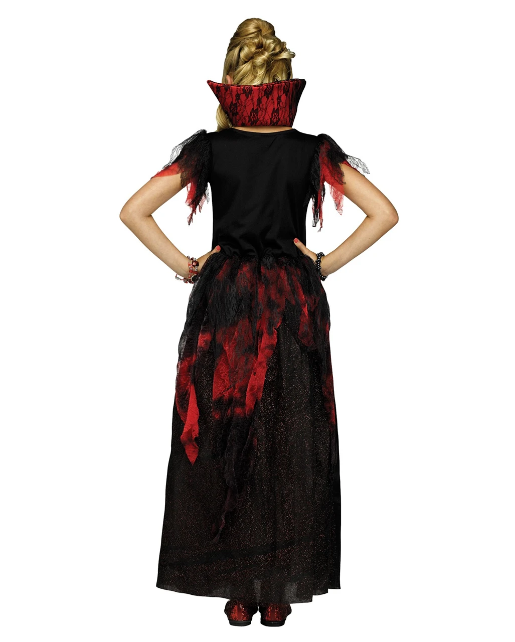 Das Vampir Baronin Kinderkostüm ist ein Vampir Kostüm für Mädchen im Alter von ca. 8 – 16 Jahre. Es ist in den Größen M – XL erhältlich und besteht aus weichem Stoff. Das Kostüm ist in schwarz-rot gehalten und hat kleine Glitzer-Partikel mit eingearbeitet. Am Brustbereich ist eine Akzent Schnürung und die kurzen Ärmel sind aus Tüll-ähnlichem Fransenstoff. Ein schöner hoher Kragen verleiht dem Kinder Vampirkostüm etwas Mayestätisches. Für den perfekten Auftritt fehlt noch die passende Perücke, die mit Hexen Kinderperücke schwarz schnell gefunden ist.