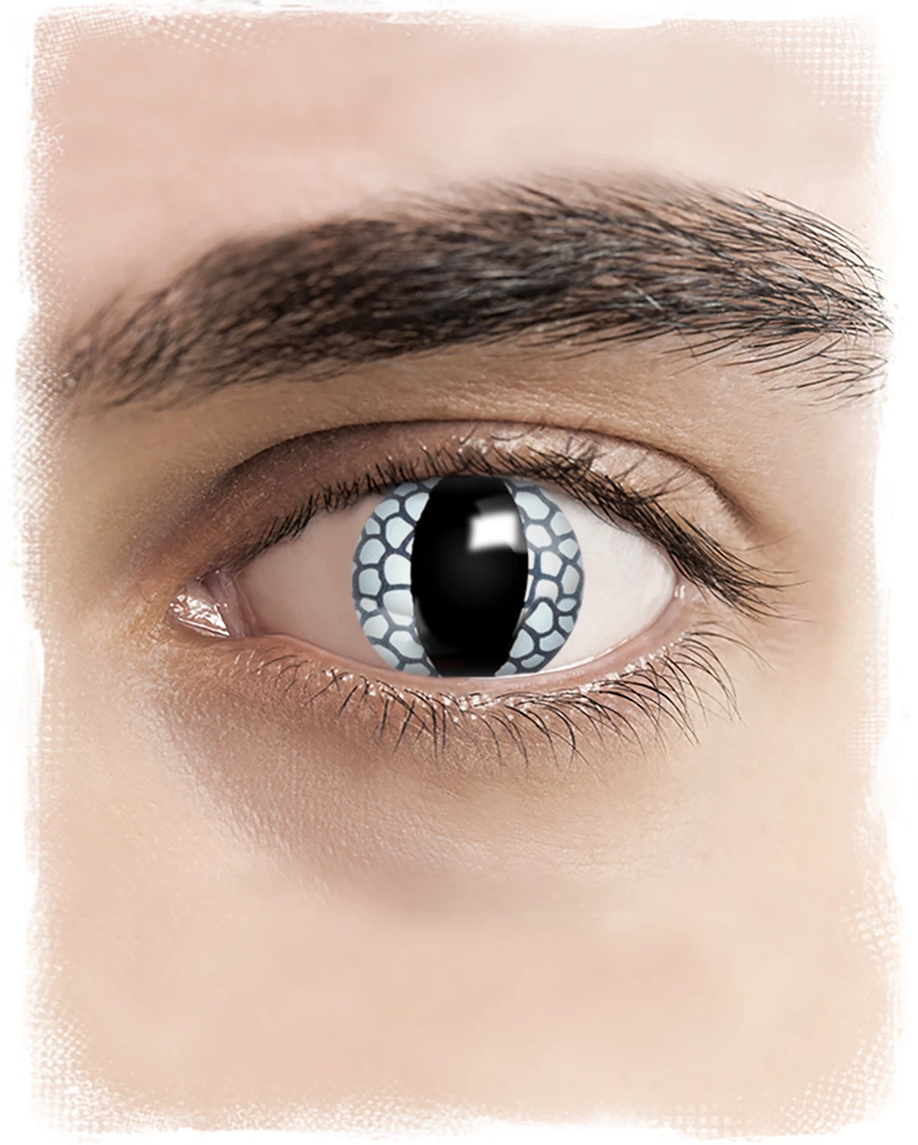 Durch ihre lange Haltbarkeit von bis zu 12 Monaten lassen sich farbigen Motivlinsen öfter wiederverwenden. Die Weißen Drachenauge Kontatklinsen sind Jahreslinsen und eignen sich für helle und dunkle Augen
