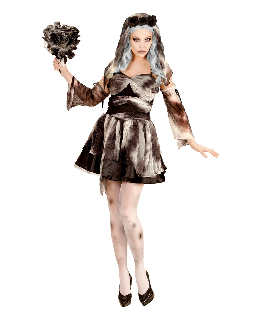 Das Zombie Braut Kostüm mit Schleier ist nicht bloß ein geniales Halloween Kostüm. Es erzählt eine Geschichte. Tot und verwest stehst du als Untote Braut vor dem Altar. Dein Bräutigam ist mit einer Hexe durchgebrannt. Und du wartest nun sehnsüchtig auf den neuen untoten Gemahl, der deine Lust auf Gehirn teilt. Als süße Braut mit schmutzigem Kleid gehst du am besten gleich auf die nächste Halloween Party, anstatt weiter am Altar zu warten. Vampire, Monster und Dämonen sind schon ganz verrückt darauf, um deine Hand anzuhalten. Oder wie wäre es mit dem schmucken Zombie, der an der Theke wartet?